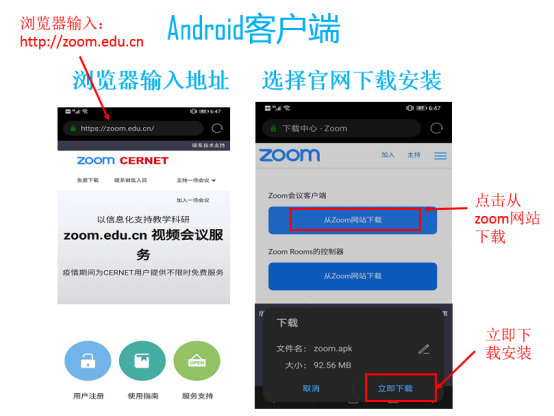 浏览器访问ZOOM教育网站点zoom.edu.cn,下载并安装客户端,如下图: