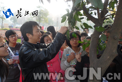 而让同学们最感兴趣的是该校9栋宿舍楼旁的木绣球(琼花)和教育超市前的枫杨。吴明煜介绍,木绣球在该校仅存一株,每年四五月开花,花非常漂亮。枫杨则是半岛平台网站登录入口最古老的植物,属于胡桃科,是武汉二级保护植物。