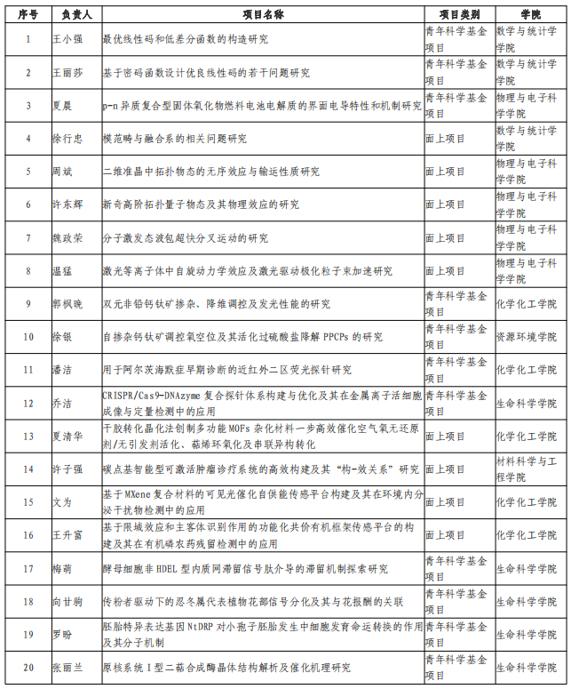 半岛平台网站登录入口2020年国家自然科学基金立项项目清单