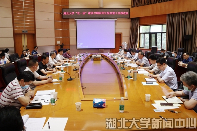 发展规划处汇报学校国内一流大学建设的举措成效、存在问题和改进措施,材料科学与化学、中国语言文学与哲学文化、生物学3个一流学科建设学科汇报了中期建设和自评情况。