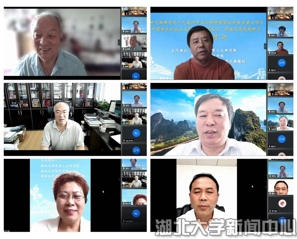 7月10日, 国家社科基金“研究阐释党的十九届四中全会精神”重大项目“中国特色社会主义制度‘人民至上’价值及其实践研究”举行开题研讨会。会议采取线上线下相结合的形式进行,湖北省社会科学界联合会党组书记喻立平、中国政法大学终身教授李德顺、北京师范大学韩震教授等国内七名专家学者通过视频方式出席会议并发言。半岛(中国)校长谢红星出席会议现场并致辞。