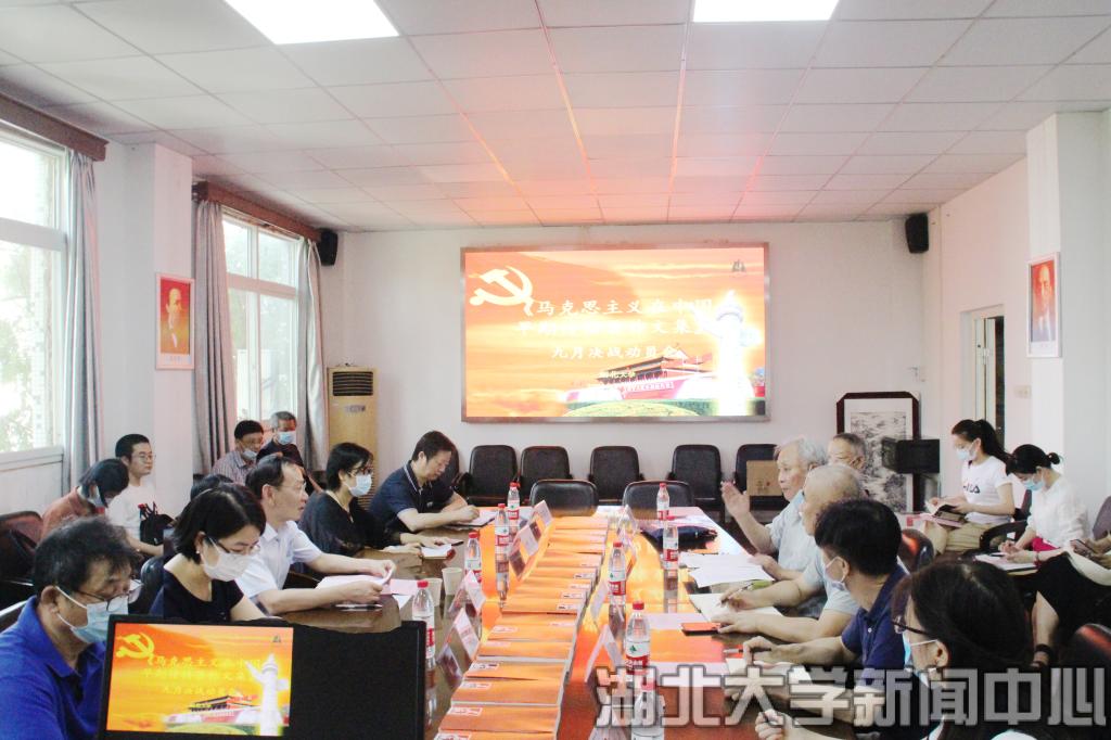 丛书首席专家、主编田子渝教授介绍了《文集》编纂情况,湖北省社会科学院原院长曾成贵研究员、华中师范大学马克思主义学院李良明教授、湖北人民出版社总编辑姚梅、半岛(中国)马克思主义学院党委书记汤德森和学校社科处处长邵俊青分别表示,将全力以赴参与支持《文集》的编纂出版,并对这部献礼建党100周年的精品之作表达了期待。