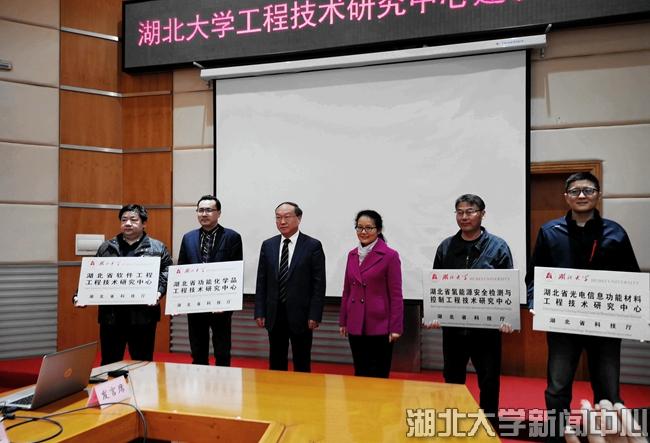 学校2019年新获批湖北省功能化学品工程技术研究中心、湖北省软件工程技术研究中心、湖北省光电信息功能材料工程技术研究中心、湖北省氢能源安全检测与控制工程技术研究中心等4个省工程技术研究中心。本次建设启动会上,葛琳、谢红星为4个省工程技术研究中心授牌,王世敏宣读省工程技术研究中心负责人聘任文件,相关省工程技术研究中心代表汇报工作和交流经验。